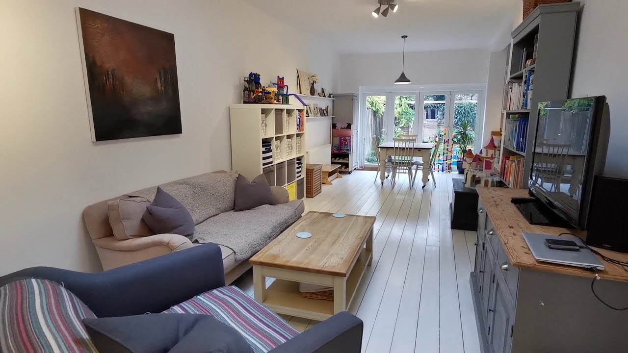 Living Room - 29'5 x 10'8: This room boasts high ceilings, wood flooring and plenty of natural light via the rear facing bi-folding patio doors, as well as sky light. The room has been laid out to provide a natural living and dining area